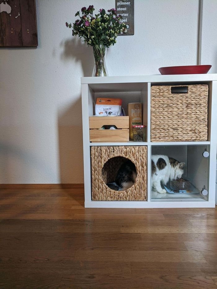 #8 Kallax Puppy-Proof Cat Feeding Station Station; Food And Treat Storage Above.