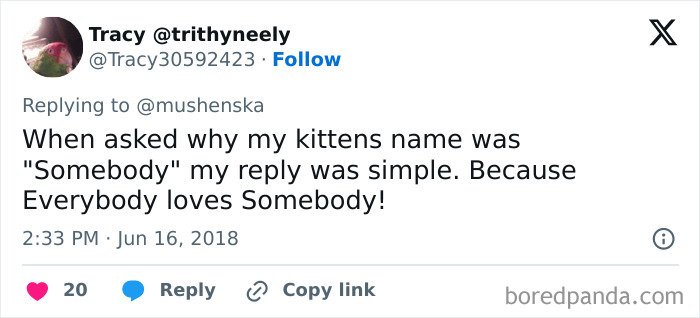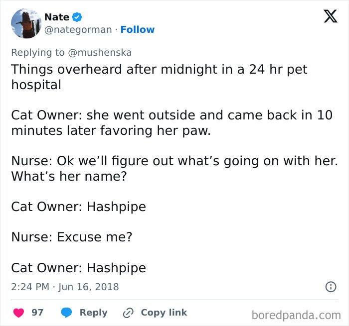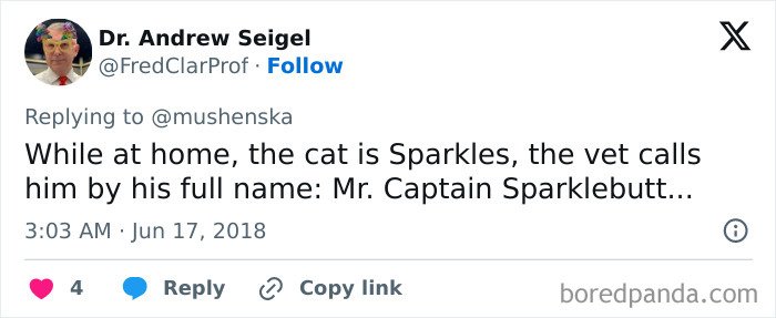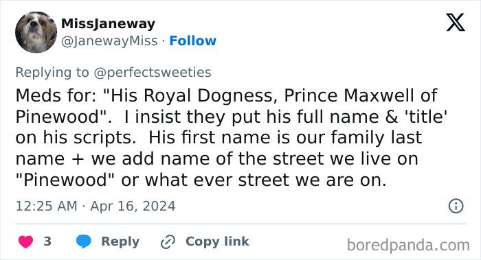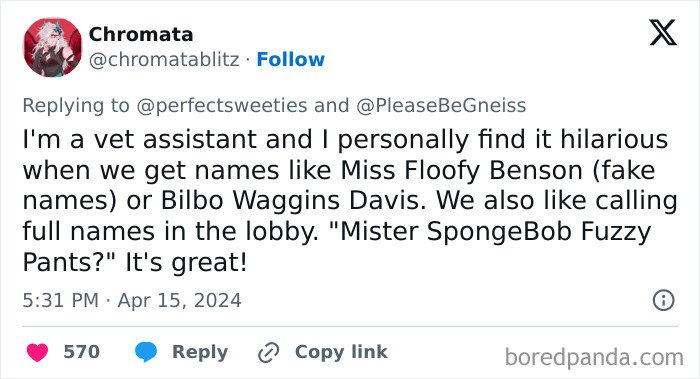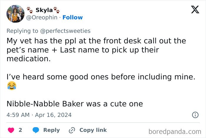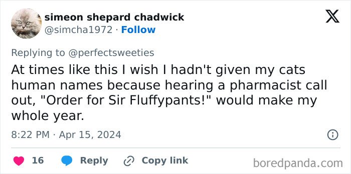 X users inspired owners to share the funny, ridiculous, and awesome names they’ve given their pets that ended up making their veterinarians and vet pharmacists laugh way harder than they expected to. Scroll down for some wholesomeness and a big dollop of inspiration.