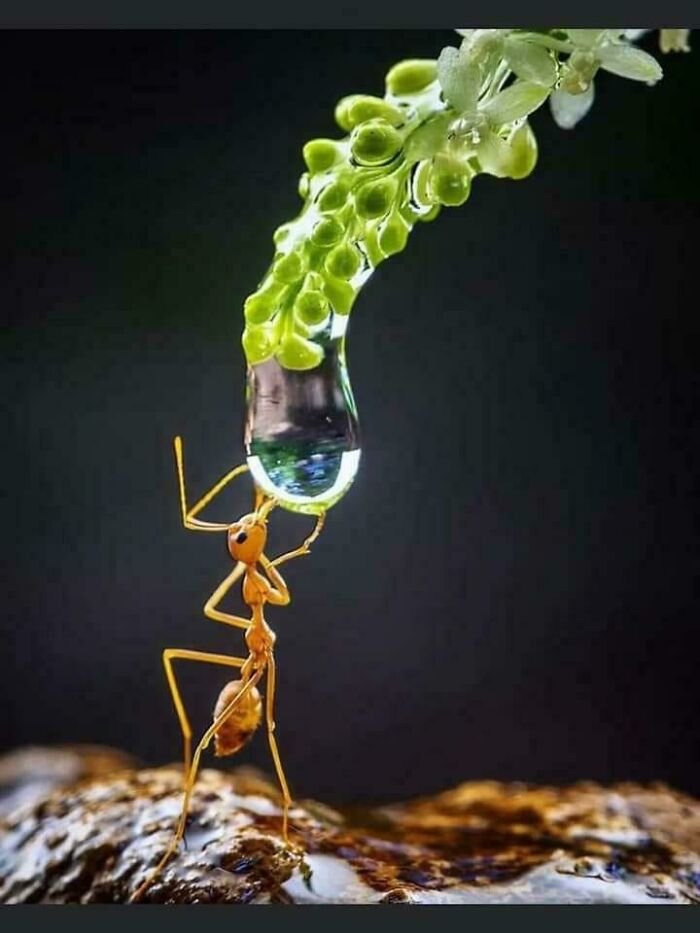 #49 Macrophotography Of An Ant Drinking From A Dew Drop