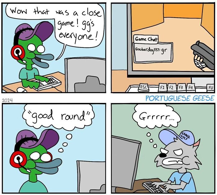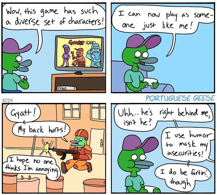 If you’ve ever lain awake at 2 a.m. reliving a painfully awkward conversation from five years ago, congratulations—you’d probably enjoy Portuguese Geese. Joe Holtby, the artist behind these painfully relatable webcomics, knows all too well the sting of awkward social situations and turns them into comics.