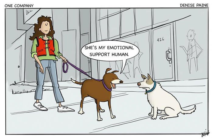 Living with Doggo is like, well, living with a cartoon. The real Doggo doesn’t actually have a brown spot on his back—that is there to protect his identity.
