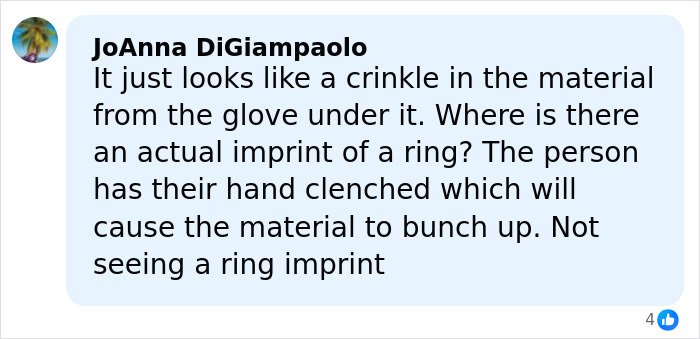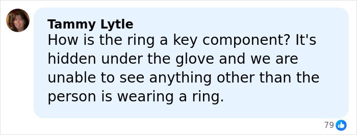 “How is the ring a key component? It’s hidden under the glove and we are unable to see anything other than the person is wearing a ring,” questioned another skeptical user.
