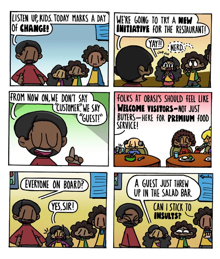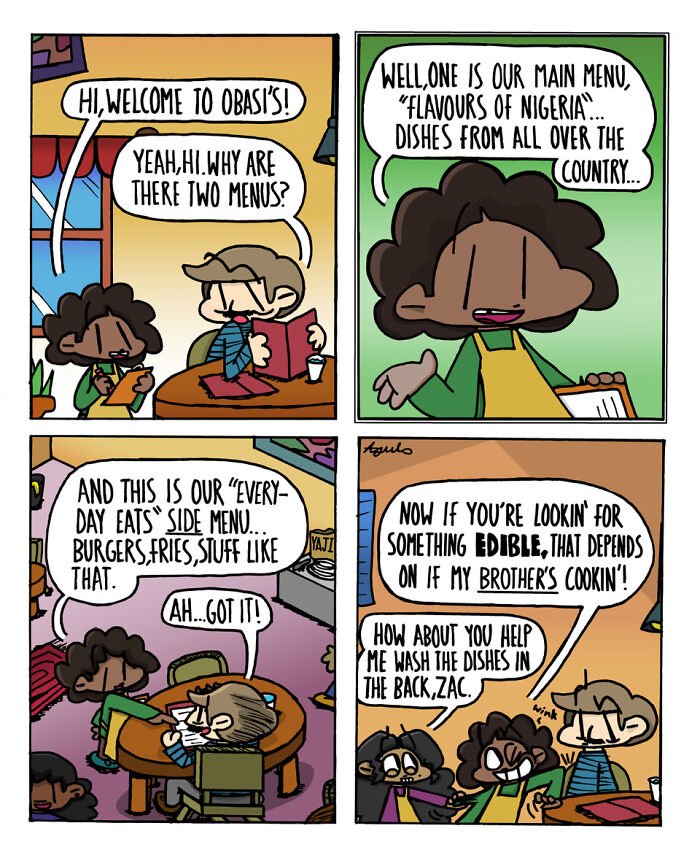 The comics in Mef Ajulo’s “Third Servings” series drop you straight into the messy overlap that will be relatable to anyone who’s been involved in a family-run business, where patience runs thin, love stays constant, and chaos is always one customer away. Set largely inside a struggling family restaurant, the comic hits that sweet spot of painfully ordinary with the kind of everyday drama that doesn’t look dramatic until you’ve lived it.