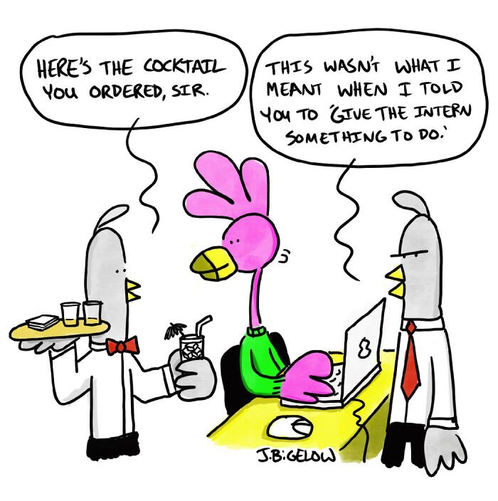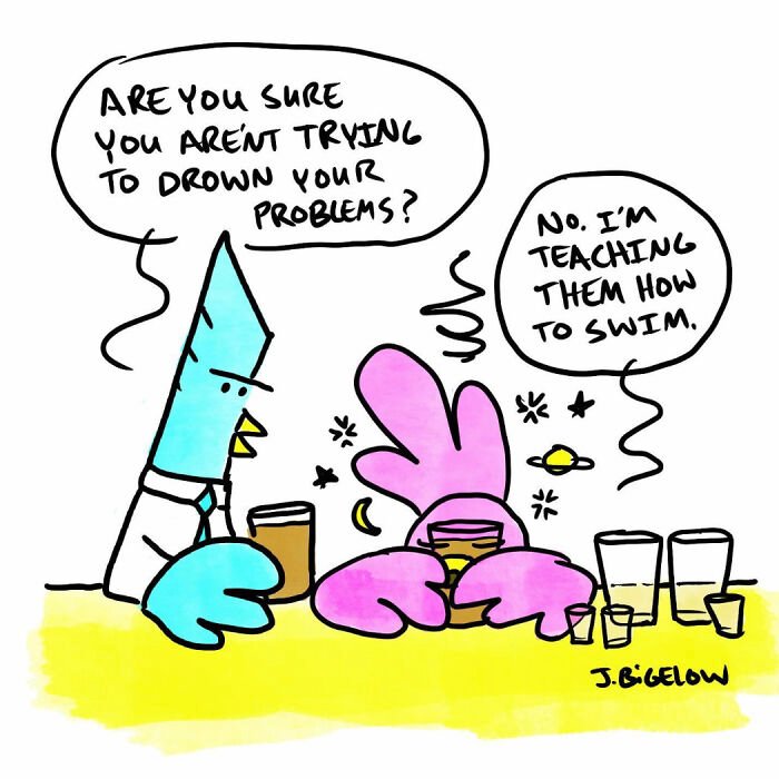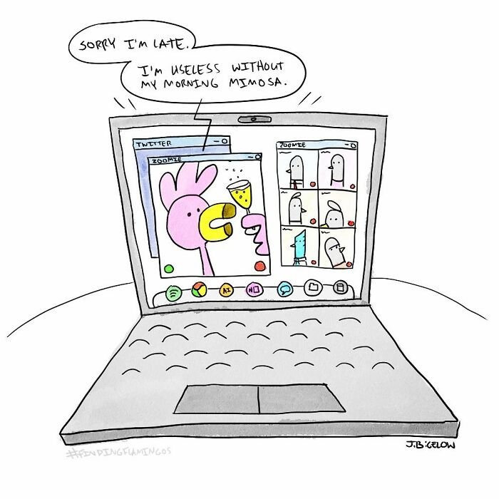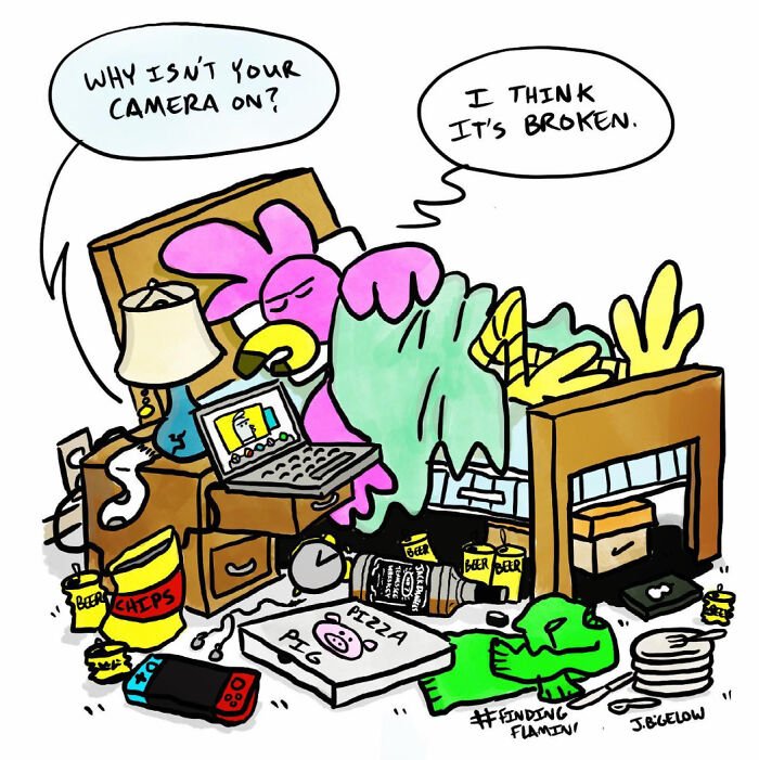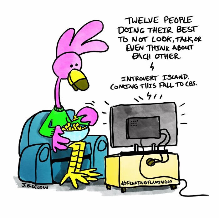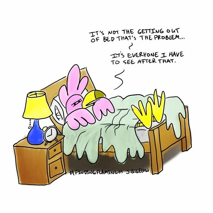 Bored Panda was interested to learn more about the cartoonist and his series, so we asked a few questions, to which Johnathan kindly responded. First, the artist elaborated on the recurring themes in his work: “A lot of my comics explore the absurdities of modern life—workplace nonsense, interpersonal dynamics, and those universally relatable small moments. However, Finding Flamingos also delves into themes like anxiety, loss, self-abuse, addiction, depression, loneliness, and desperation—words not typically associated with humor comics. I think this mix allows for a therapeutic voice in the comic, helping me (and others) laugh at ourselves and the realities of our own work and personal lives.