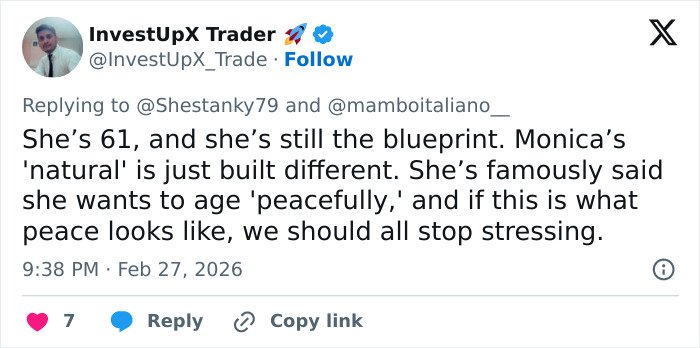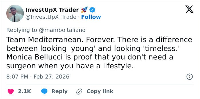 “Team Mediterranean. Forever. There is a difference between looking ‘young’ and looking ‘timeless.’ Monica Bellucci is proof that you don’t need a surgeon when you have a lifestyle,” wrote another.