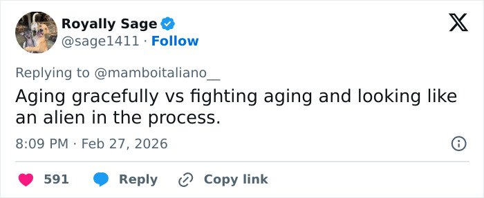 “Aging gracefully vs fighting aging and looking like an alien in the process,” added a third.